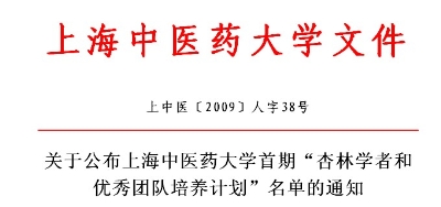根据《上海中医药大学关于公布<“杏林学者和优秀团队培养计划”实施办法>的通知》(上中医(2009)人字第31号)精神,经部门推荐、专家评审、校党委常委会审定和网上公示等程序,现确定教学实验中心张彤等30人入选杏林学者培养计划名单、中药学院“基于计算化学生物学和中药化学新药基础”等8个团队入选优秀团队计划名单,龙华医院“中医药防治心血管疾病研究”等2个团队入选优秀团队(培育)计划名单,如下所示:
